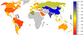 Users describe the map as reflecting a quantitative tilt in East Asia. While this is true overall, the region’s major countries still vary considerably. China exhibits the most quantitative tilt, although Macao and Hong Kong notably skew less quantitative than mainland China. Japan shows less (but still significant) quantitative tilt than China. Curiously, South Korea actually shows a verbal tilt. If we extend to Southeast Asia, we notice Vietnam presents balanced PISA scores, if not a slight verbal tilt as well. If the narrative here is supposed to be “those Asians and their math brains,” we might expect less variation, at least among South Korea, Japan and China.