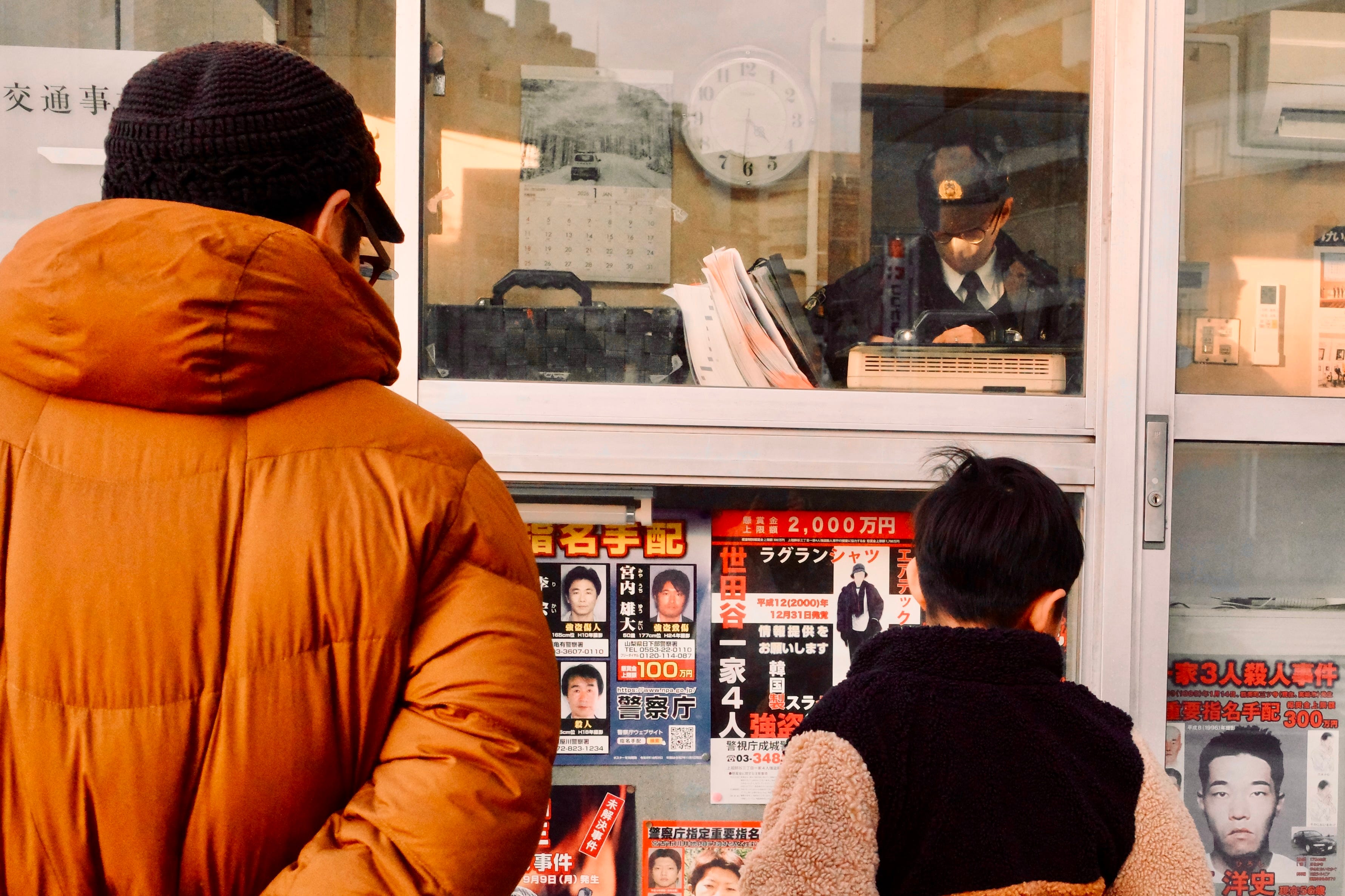 It was amidst these musings that I began to observe the curious connection between the man’s slumber and the windows, for at each interval, after checking his phone and returning to his stupor—not unlike clockwork—a new world would slur behind him, as if his very existence were a belated proof of George Berkeley. In his first vision, boxy, beige homes with gable roofs and shallow eaves arose, their practical fenestration affording no symmetry. This was all swallowed by his second vision, minutes later at 12:48 pm, of spry zelkovas and gnarled oaks, a green canopy through which telephone wires twisted like vines. But to all the train’s onlookers, it was the third vision, just before 1, of that proved his most masterful, for here one encountered total bounty, even amidst winter destitution: a grove of persimmons, spilling into the asphalt lot of an Aeon supermarket, orange globes beckoning the magenta latticework, stacked by the automatic door.